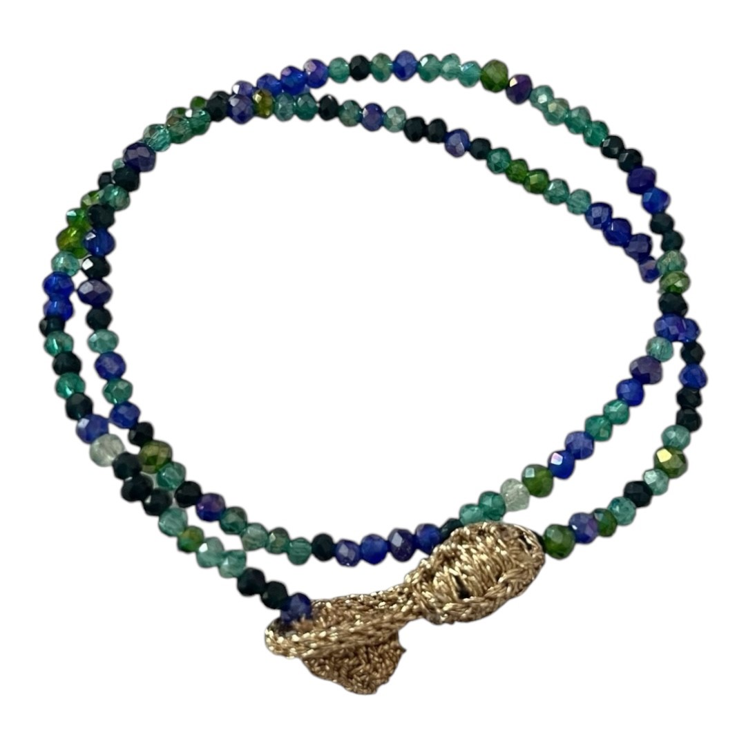 Bracelet double avec perles facettées et fermoir corde lurex.
