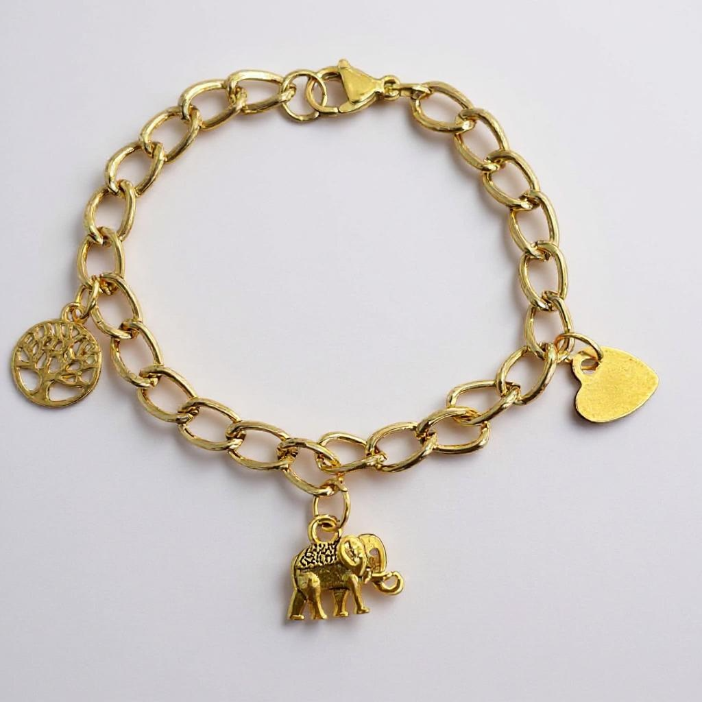 Soutenez les pensionnaires du refuge en portant à votre poignet ce bracelet maillons dorés orné de 3 breloques dont celle symbolisant Rajendra.