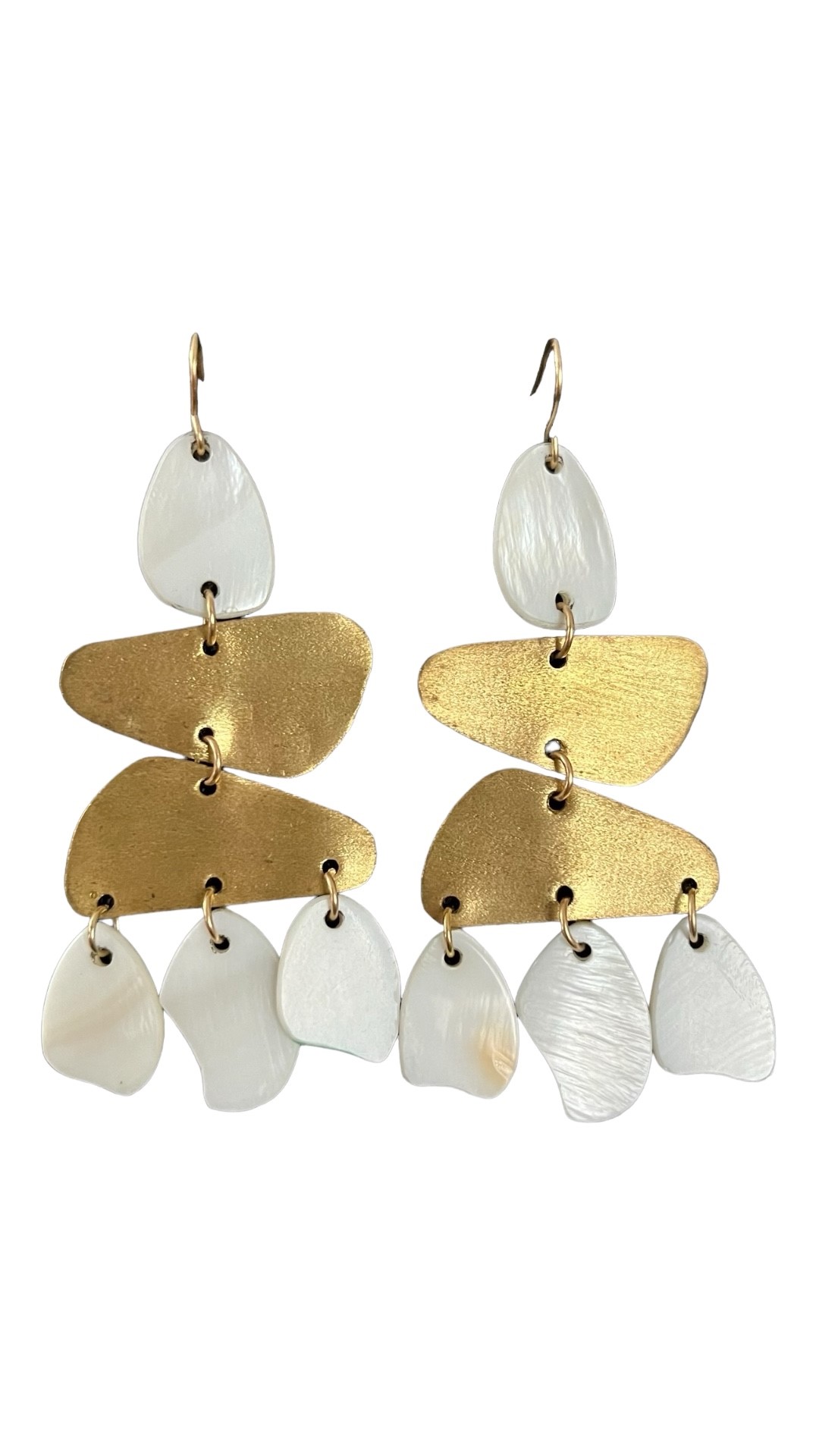 FAARA earrings sont en nacre blanche, laiton doré, gold filled 14k.