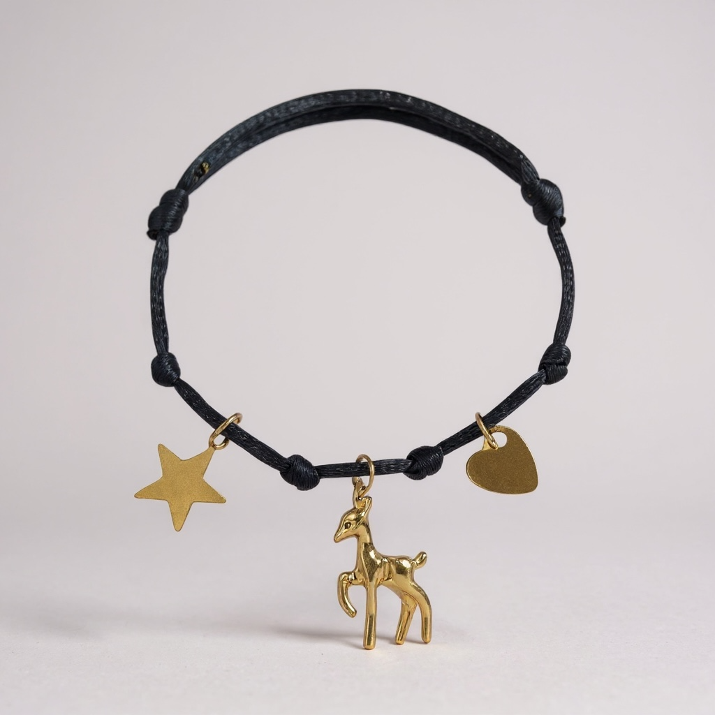 Soutenez les pensionnaires du refuge en portant à votre poignet ce bracelet cordon orné de 3 breloques dont celle symbolisant Princesse pensionnaire du refuge.