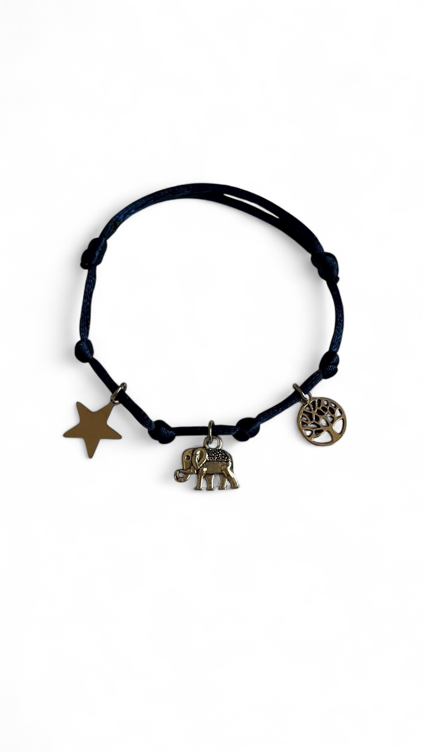 Soutenez les pensionnaires du refuge en portant à votre poignet ce bracelet cordon orné de 3 breloques dont celle symbolisant Rajendra pensionnaire du refuge.
