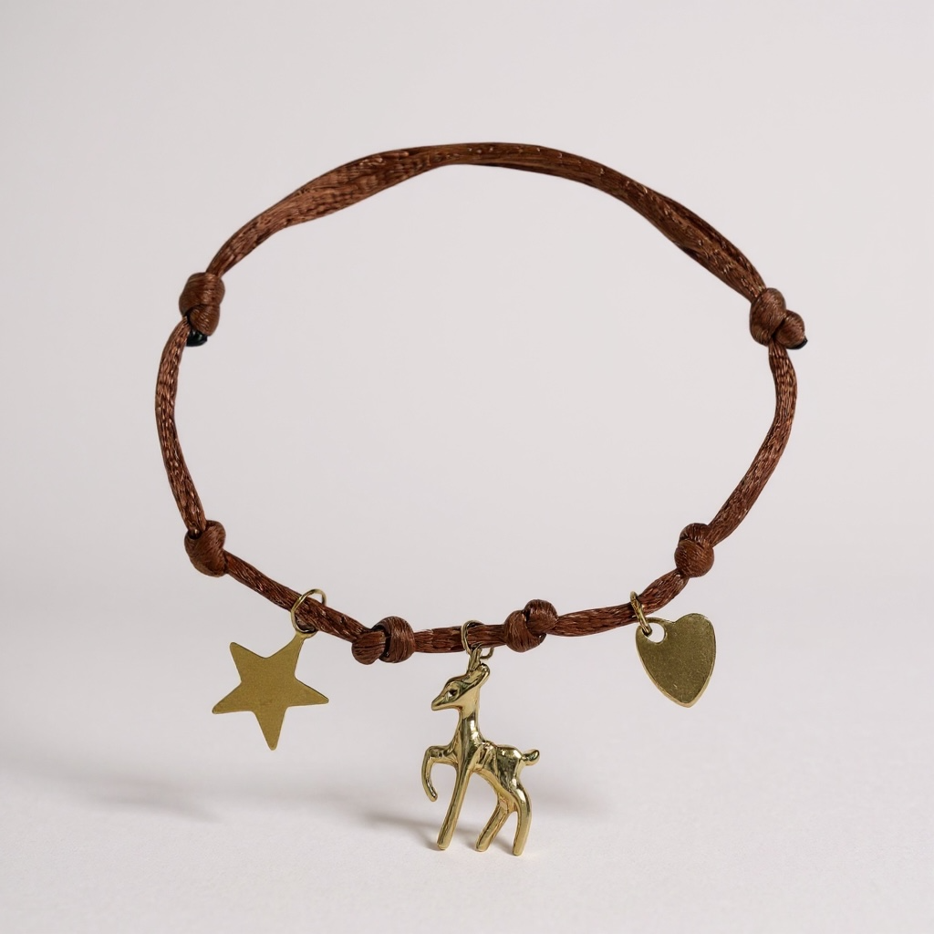 Soutenez les pensionnaires du refuge en portant à votre poignet ce bracelet cordon orné de 3 breloques dont celle symbolisant Princesse pensionnaire du refuge.