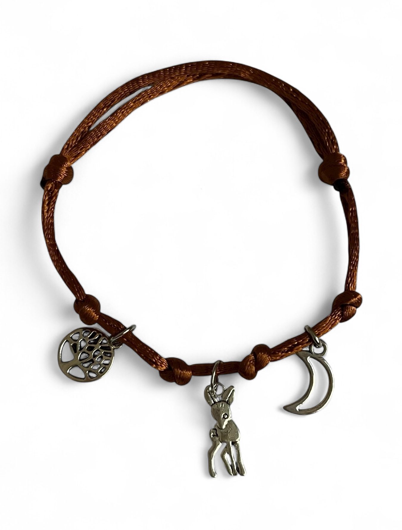 Soutenez les pensionnaires du refuge en portant à votre poignet ce bracelet cordon orné de 3 breloques dont celle symbolisant Princesse pensionnaire du refuge.