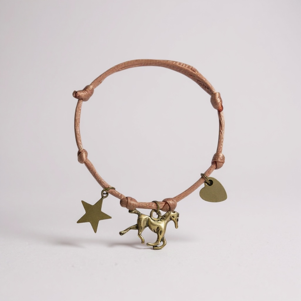 Soutenez les pensionnaires du refuge en portant à votre poignet ce bracelet cordon orné de 3 breloques dont celle symbolisant Amarante pensionnaire du refuge.