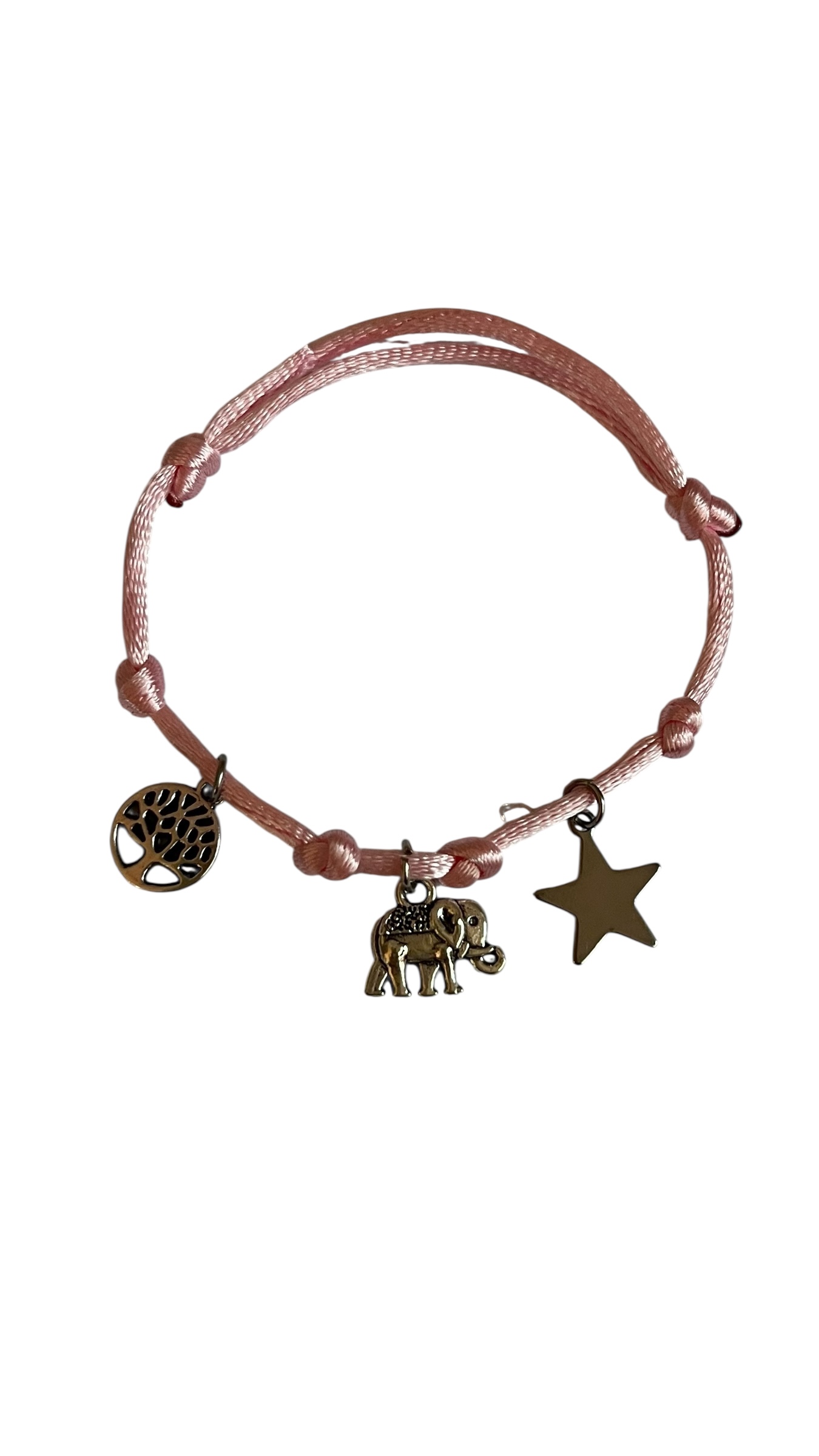 Soutenez les pensionnaires du refuge en portant à votre poignet ce bracelet cordon orné de 3 breloques dont celle symbolisant Rajendra pensionnaire du refuge.