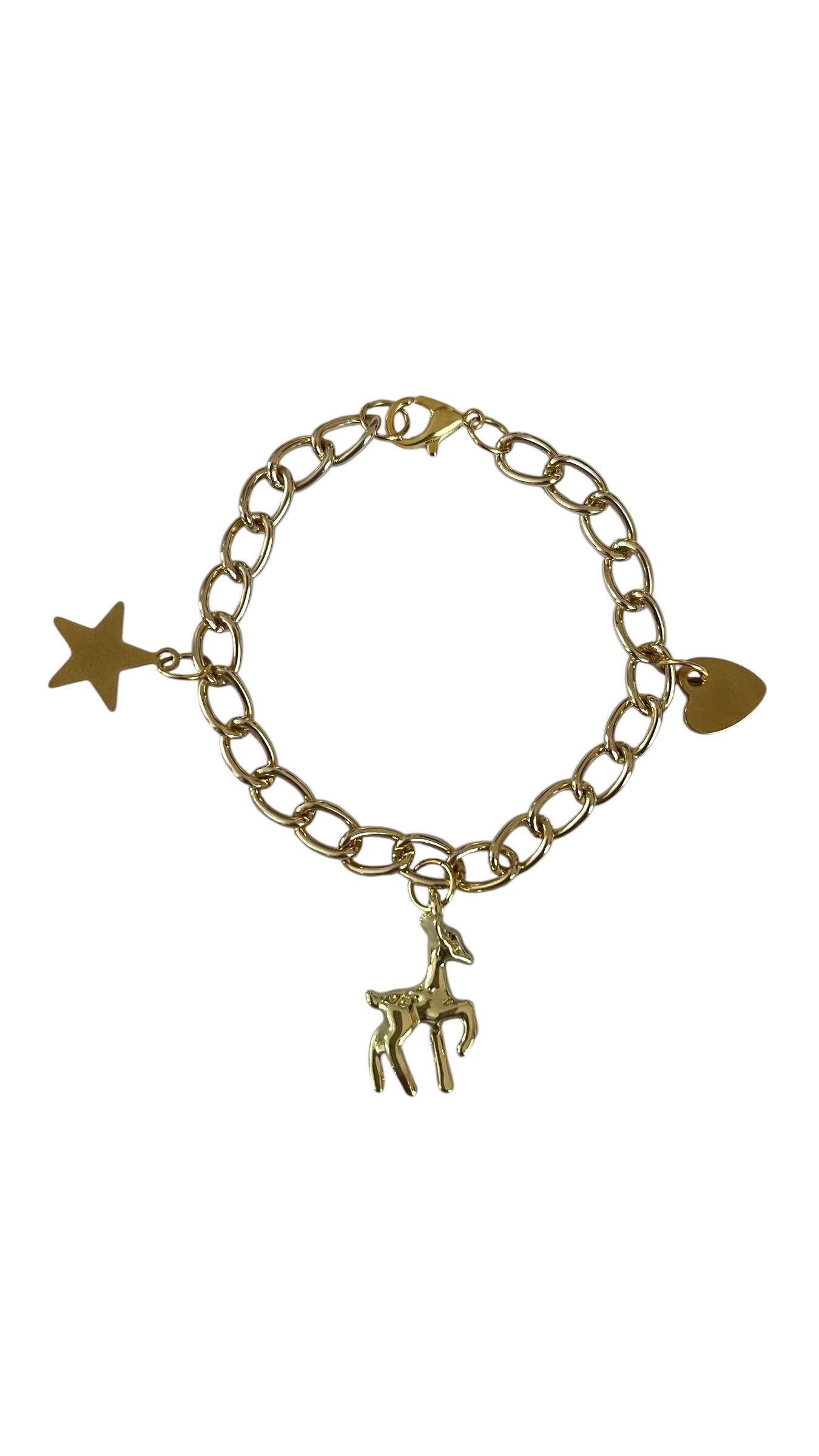 Soutenez les pensionnaires du refuge en portant à votre poignet ce bracelet maillons dorés orné de 3 breloques dont celle symbolisant Princesse.