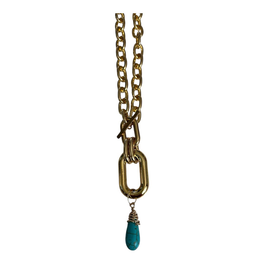 Collier acier doré avec pendentif turquoise naturelle.
