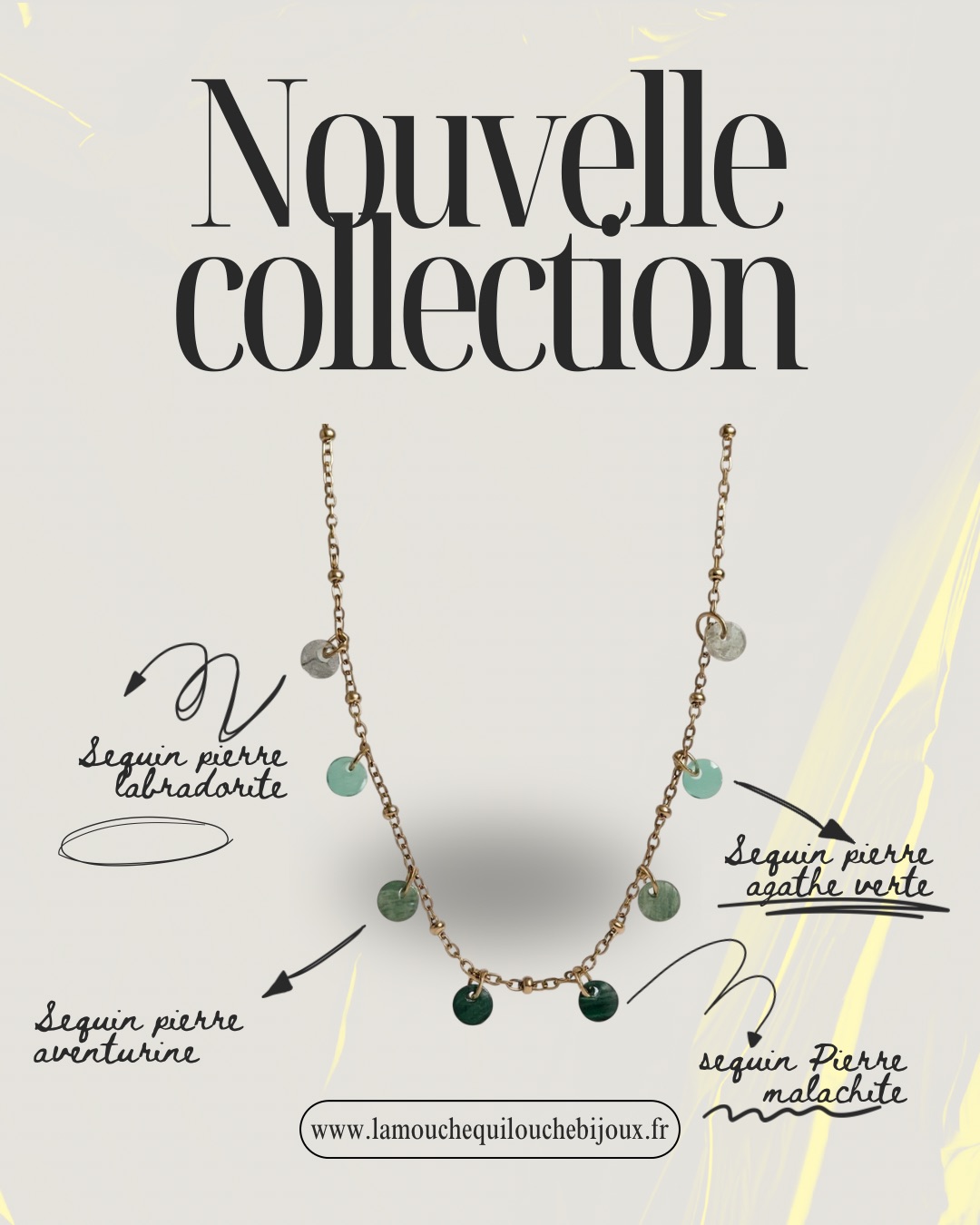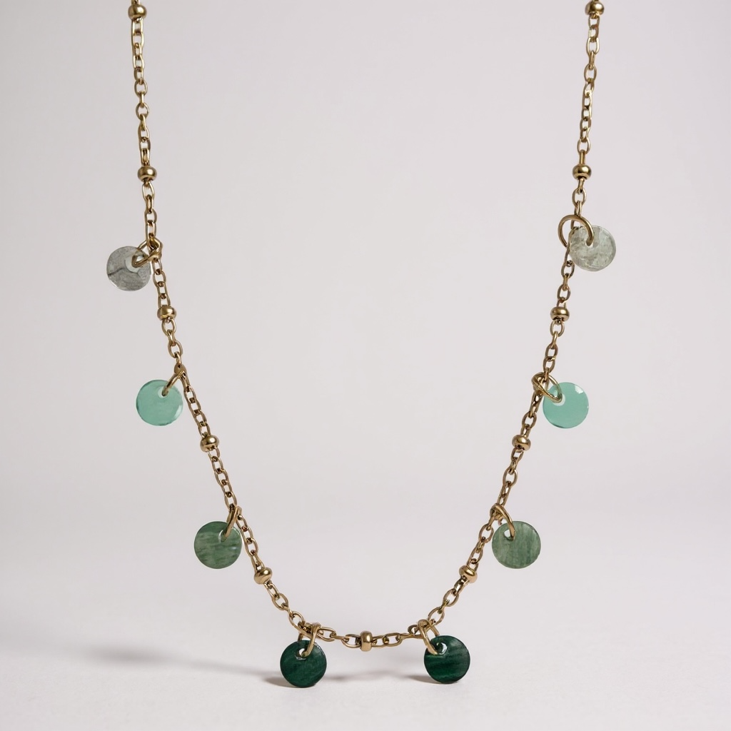 ADALISA collier sur chaîne en acier doré avec boules et sequins en pierres naturelles :