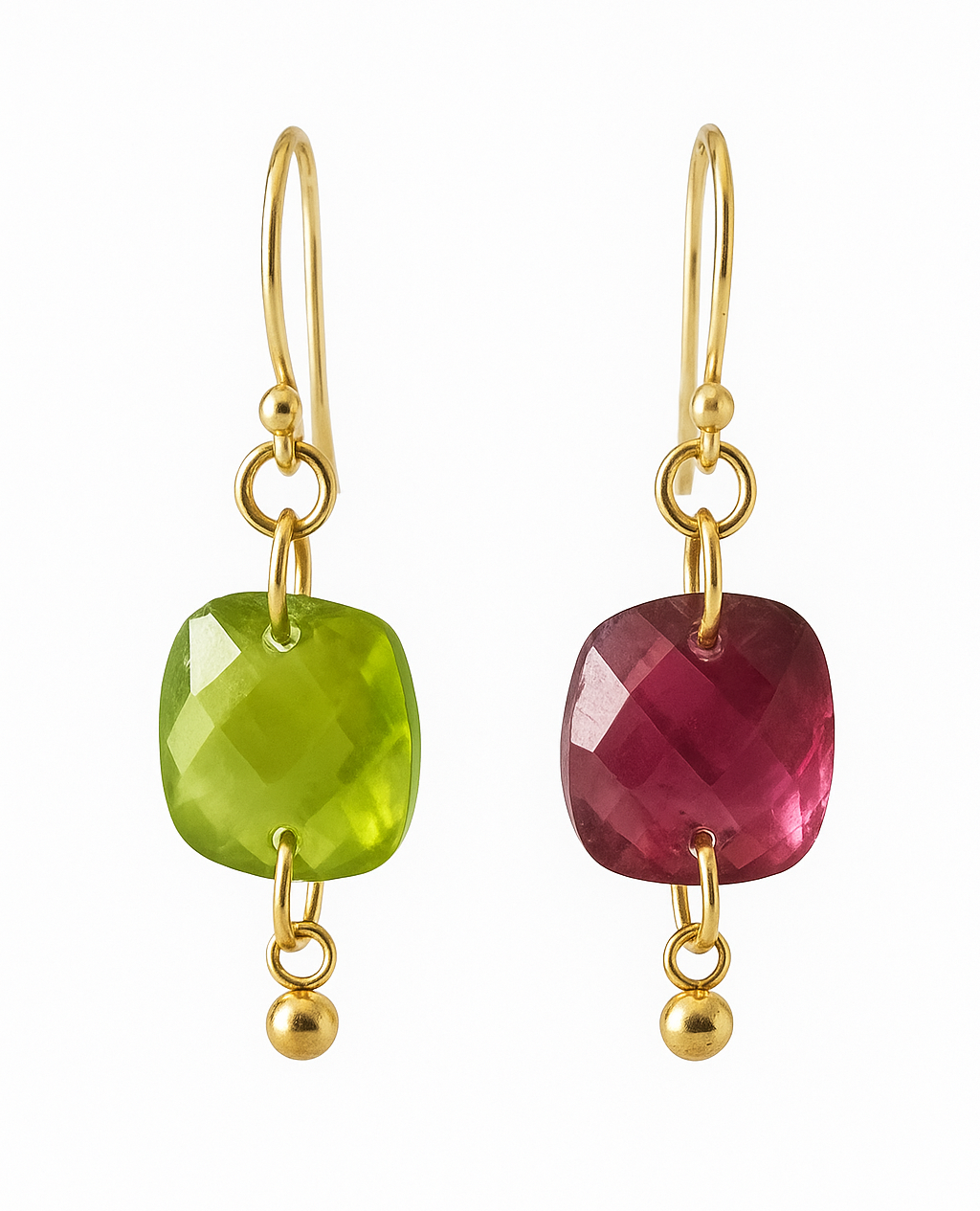 DALILAH earrings associent la fraîcheur éclatante du péridot vert à l’intensité raffinée de la tourmaline rose. Chaque pierre facettée capte la lumière avec brio, créant un jeu de reflets lumineux à chaque mouvement.
