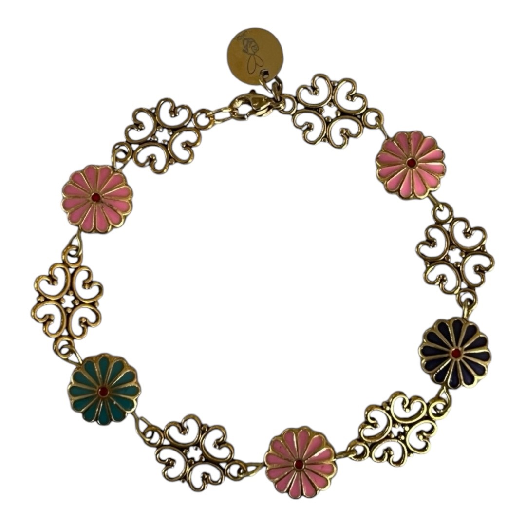 Bracelet filigrane doré et fleurs émail coloré, fermoir en gold filled 14k.