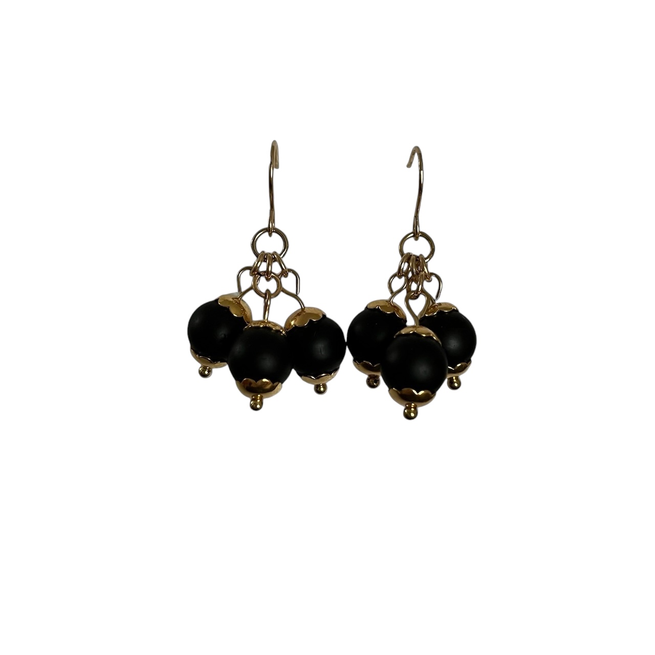 Boucles d’oreilles gold filled 14k, perles noires synthétiques.